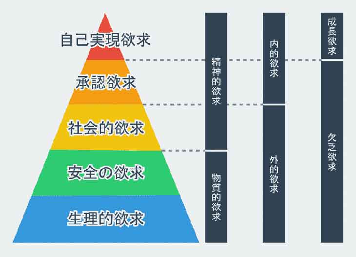 マズローの5段階欲求と言われる心理学でよく使われるピラミッドがあります。